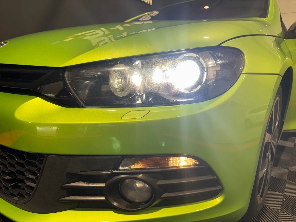 Ce Scirocco offre un excellent compromis entre performance, design et confort. Équipé des sièges chauffants, du Bluetooth, de la climatisation automatique, des feux xénon directionnels automatiques, du régulateur/limiteur de vitesse, des essuie-glaces automatiques, et bien plus encore.