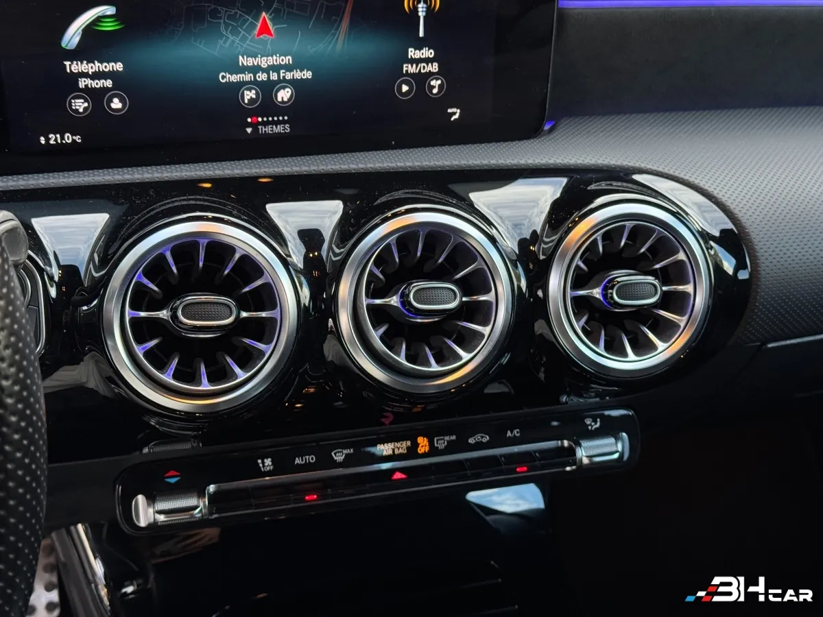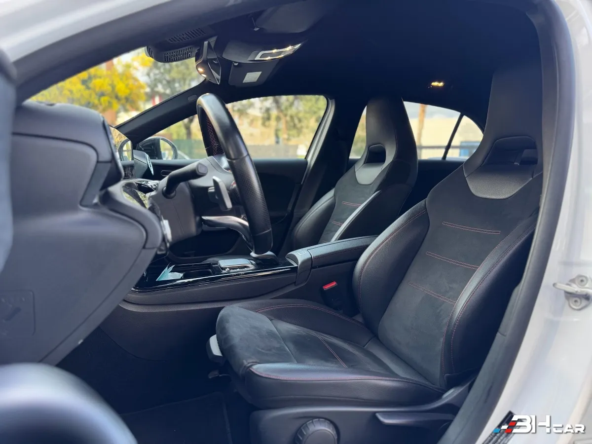 Une compacte premium au look sportif et élégant, dotée de la finition AMG Line très recherchée. Sa configuration blanc / pack Shadowline noir lui confère une allure moderne et haut de gamme, tandis que sa boîte automatique 7G-DCT assure une conduite fluide et confortable au quotidien. Idéale aussi bien en ville que sur longs trajets, avec un excellent compromis entre performance, confort et technologie.