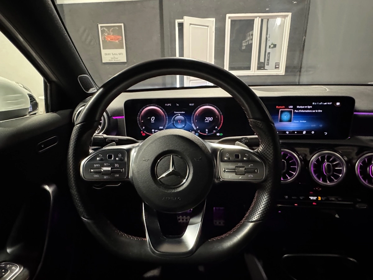 Cette Classe A bénéficie d’une finition AMG Line valorisante et d’une configuration riche en équipements, mettant en avant la technologie embarquée et l’ambiance premium propre à Mercedes.