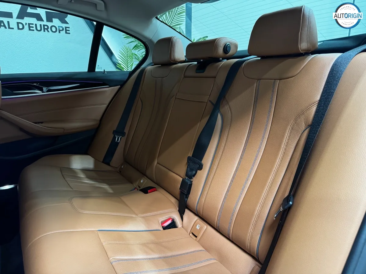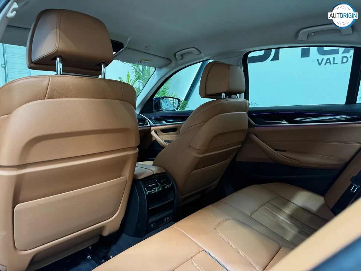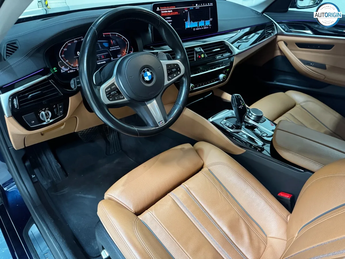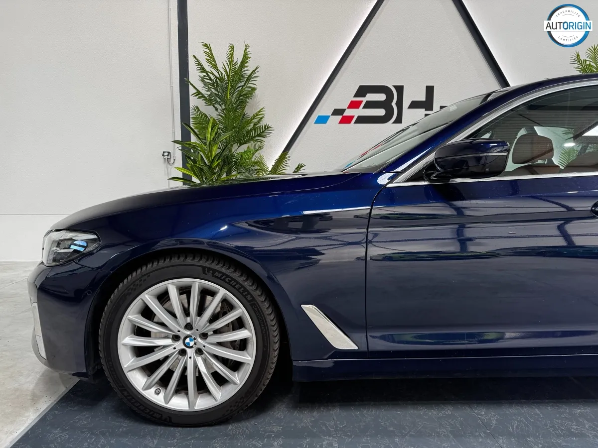 BMW Série 5 530d xDrive en excellent état, très bien optionnée, en plus d'un combo couleurs particulièrement désirable. Cet exemplaire associe la transmission intégrale, le groupe motopropulseur mild hybrid 48V et un niveau d'équipements très complet : train arrière directeur, sièges massants, caméra 360°, Driving Assistant Professional, pack hiver et bien d'autres.