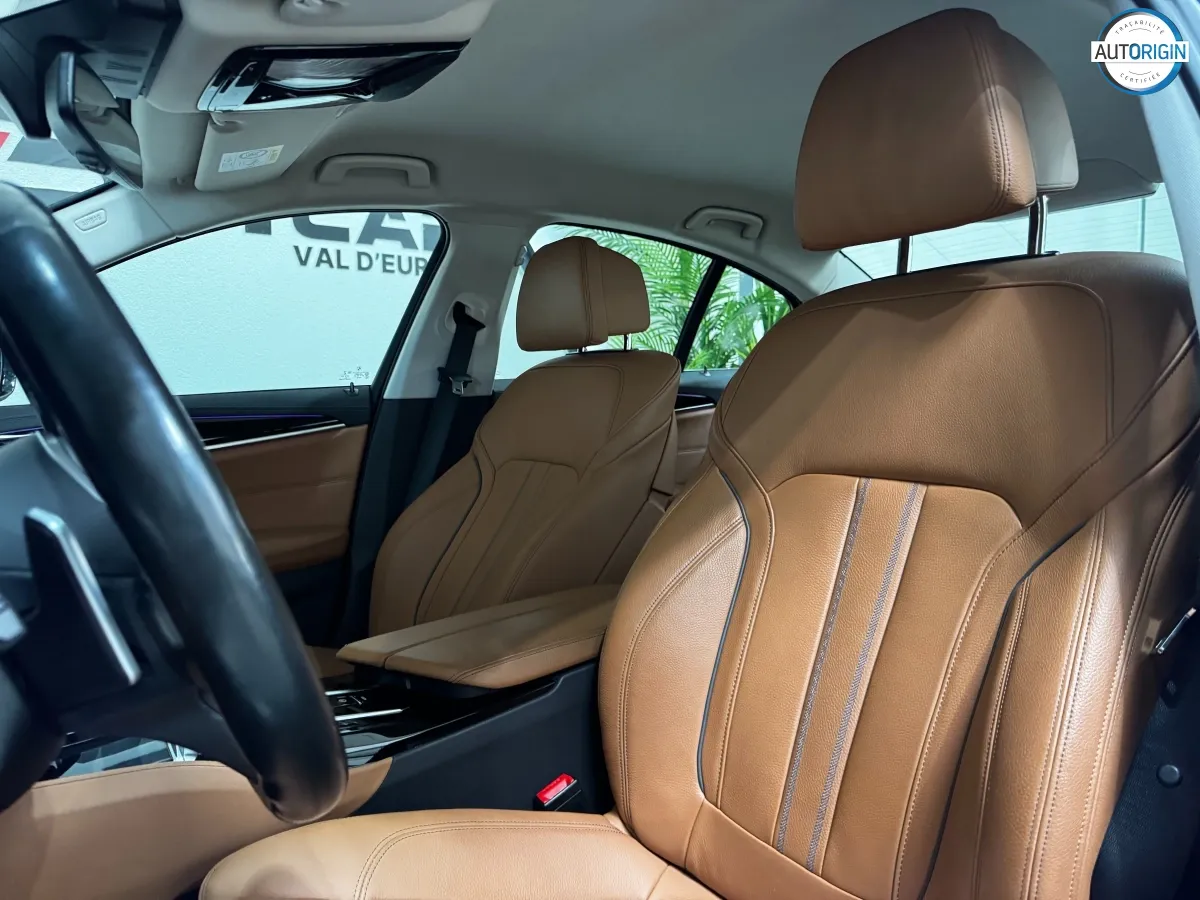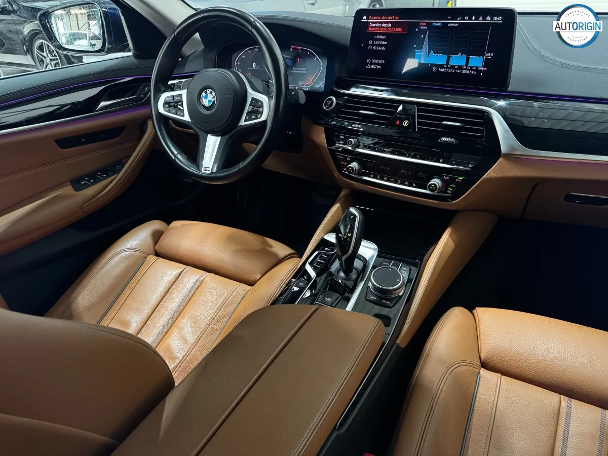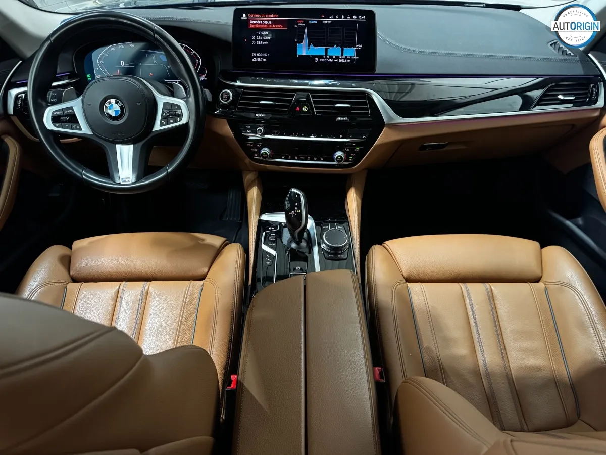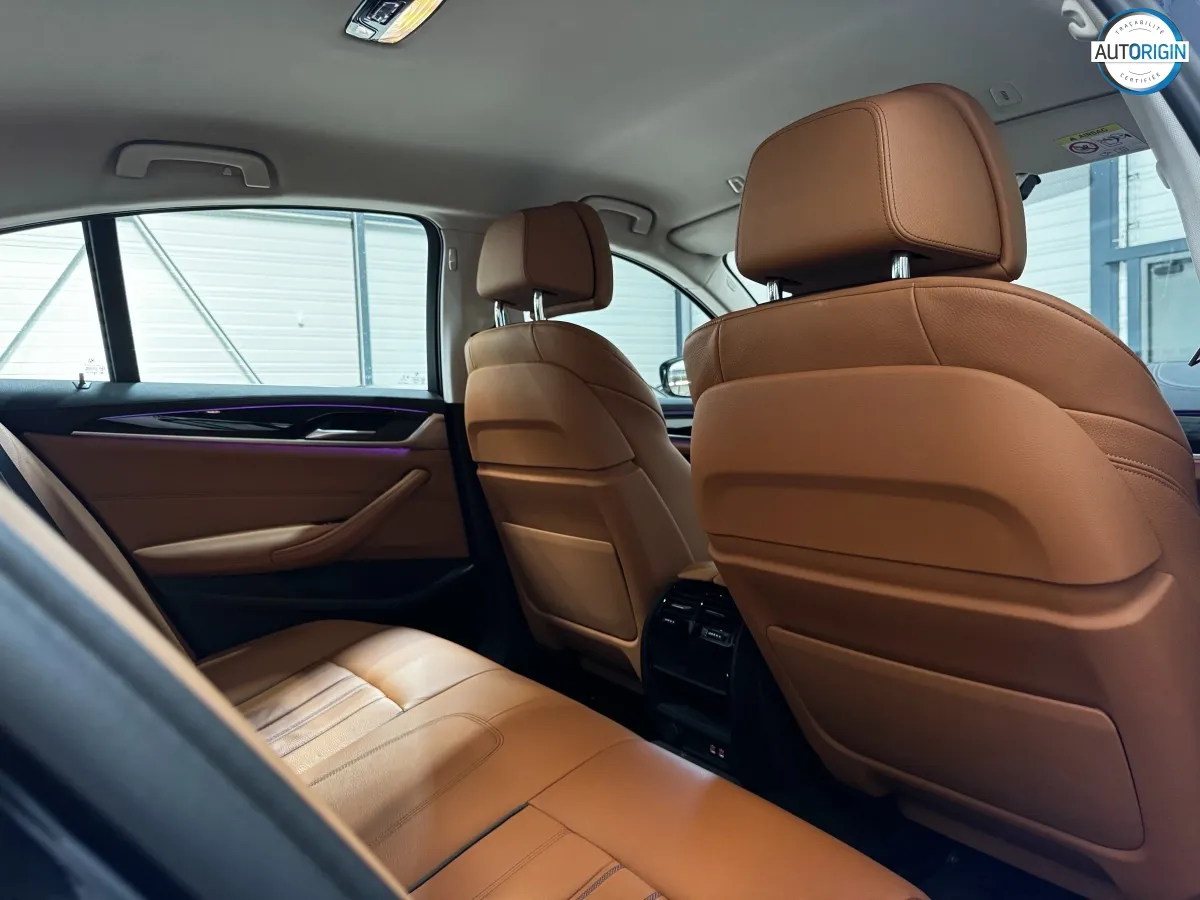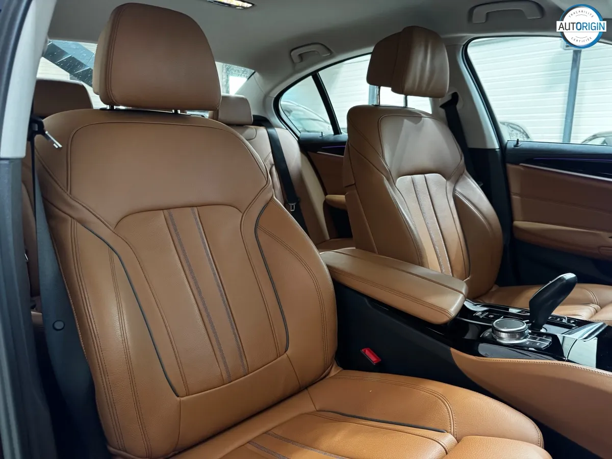 BMW Série 5 530d xDrive en excellent état, très bien optionnée, en plus d'un combo couleurs particulièrement désirable. Cet exemplaire associe la transmission intégrale, le groupe motopropulseur mild hybrid 48V et un niveau d'équipements très complet : train arrière directeur, sièges massants, caméra 360°, Driving Assistant Professional, pack hiver et bien d'autres.