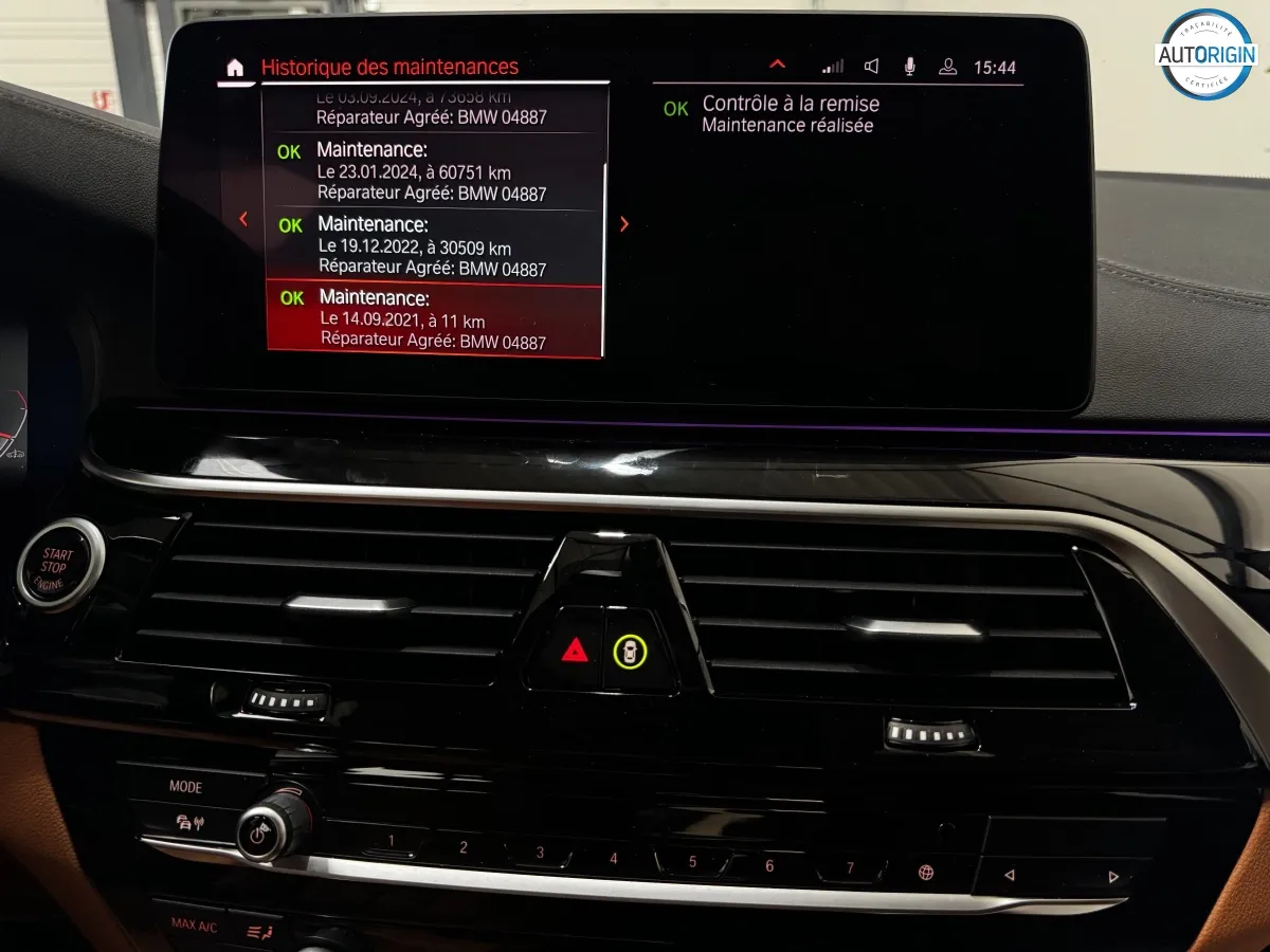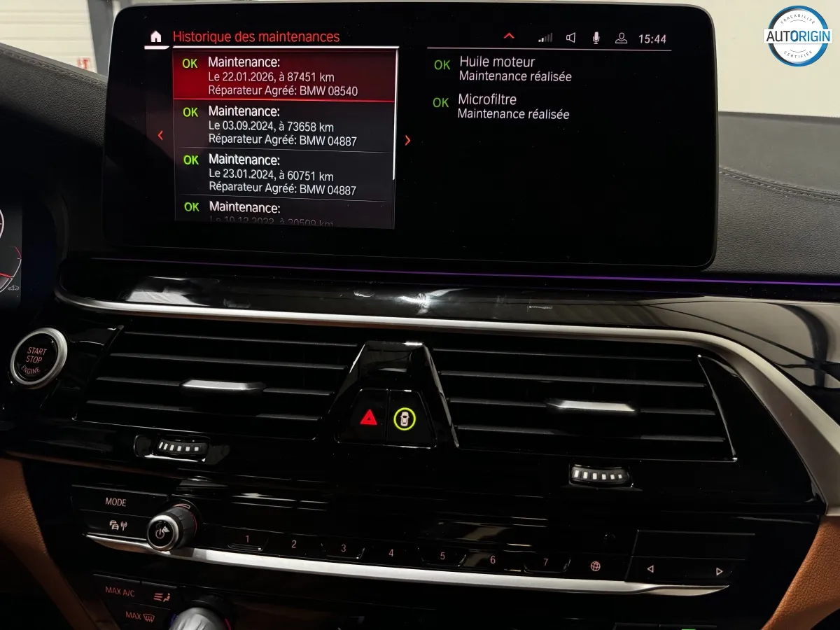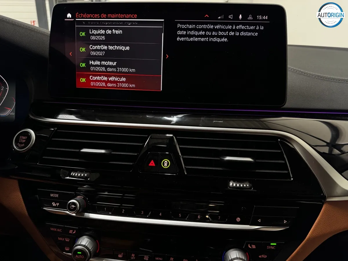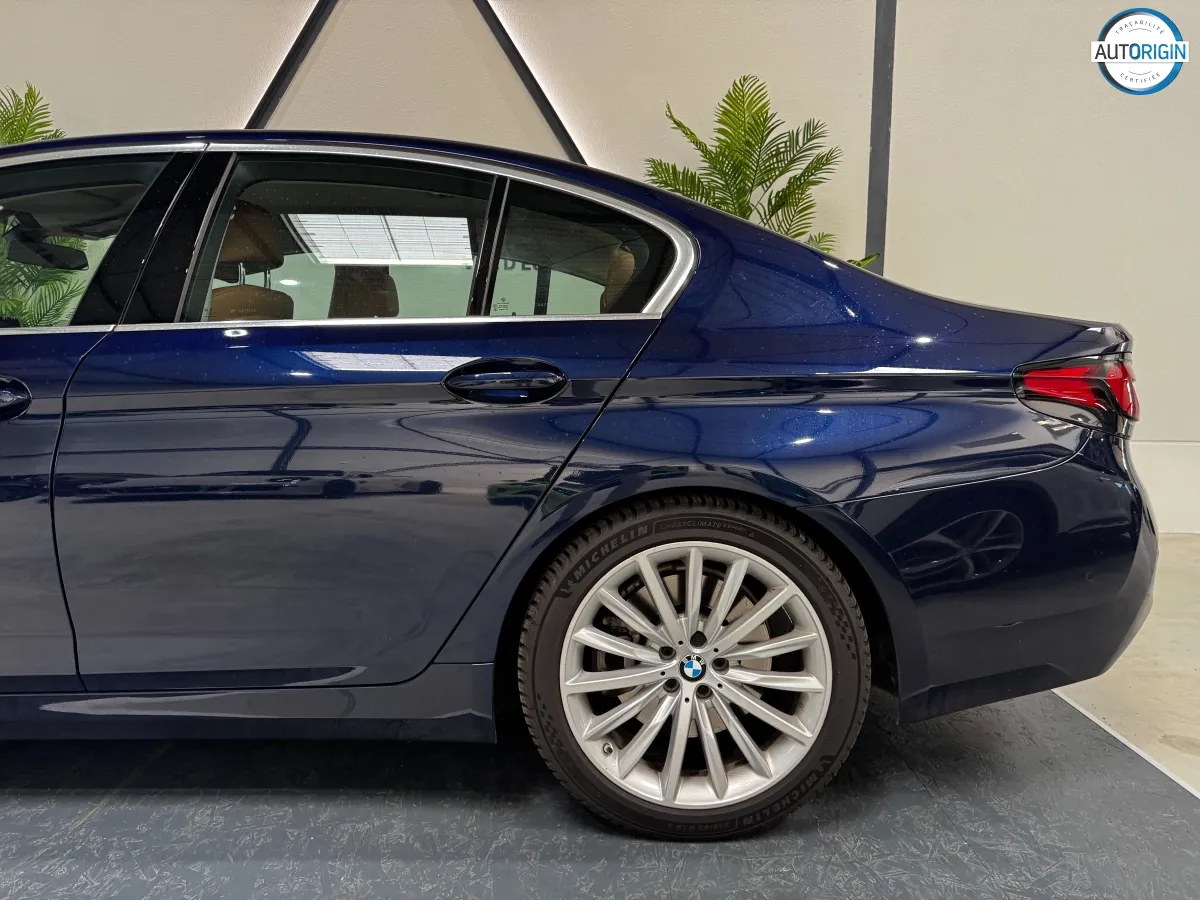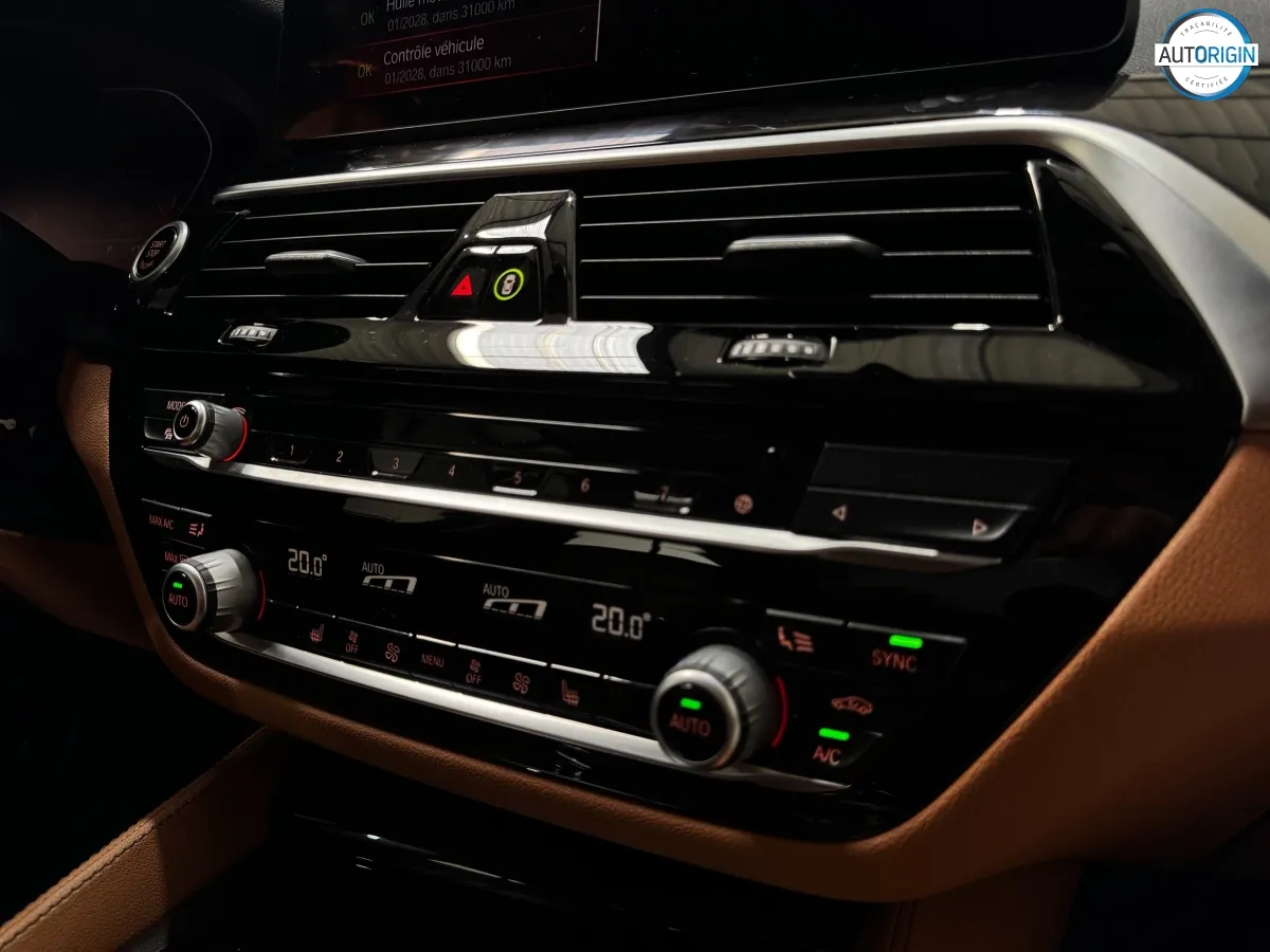 BMW Série 5 530d xDrive en excellent état, très bien optionnée, en plus d'un combo couleurs particulièrement désirable. Cet exemplaire associe la transmission intégrale, le groupe motopropulseur mild hybrid 48V et un niveau d'équipements très complet : train arrière directeur, sièges massants, caméra 360°, Driving Assistant Professional, pack hiver et bien d'autres.