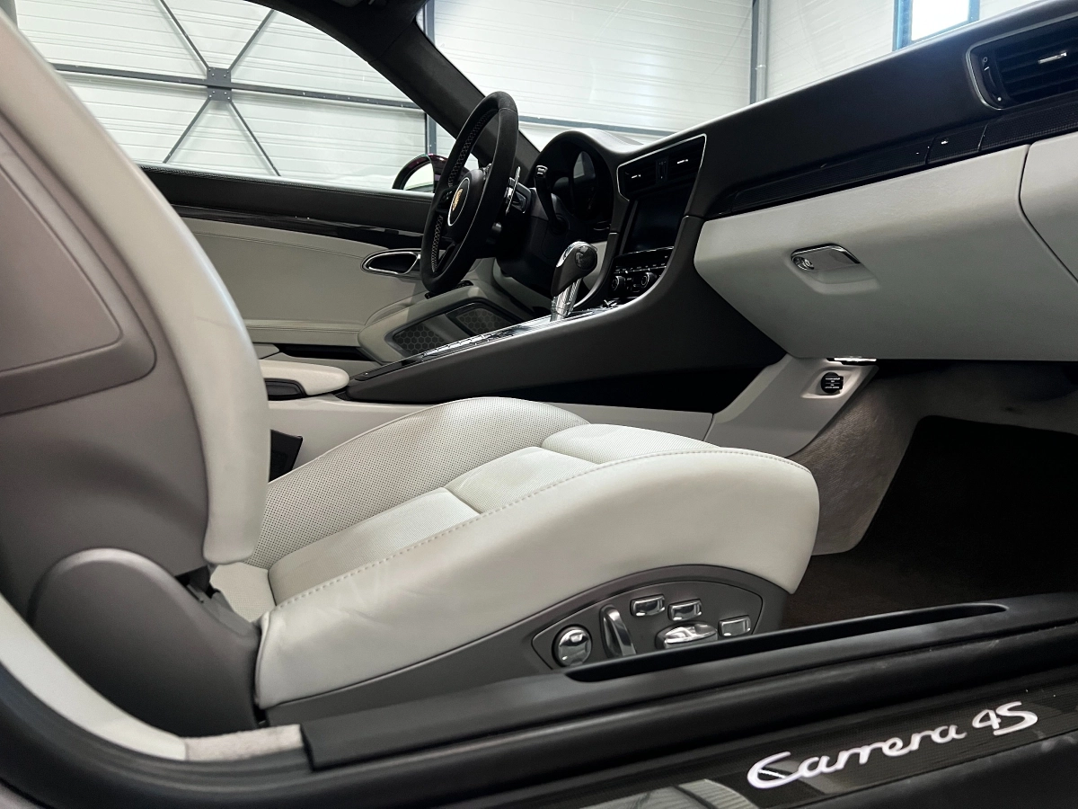 911 type 991 Carrera 4S avec faible kilométrage et historique complet, dans une configuration très optionnée. Exemple : les très recherchés pack Sport Chrono, échappement sport, PDCC et audio Burmeister. Cet exemplaire est présenté dans une teinte extérieure exclusive gris craie (covering réalisé la société XL Custom. Possibilité de revenir à sa couleur d'origine (PTS Aquatic Blue).