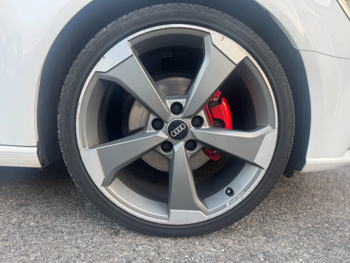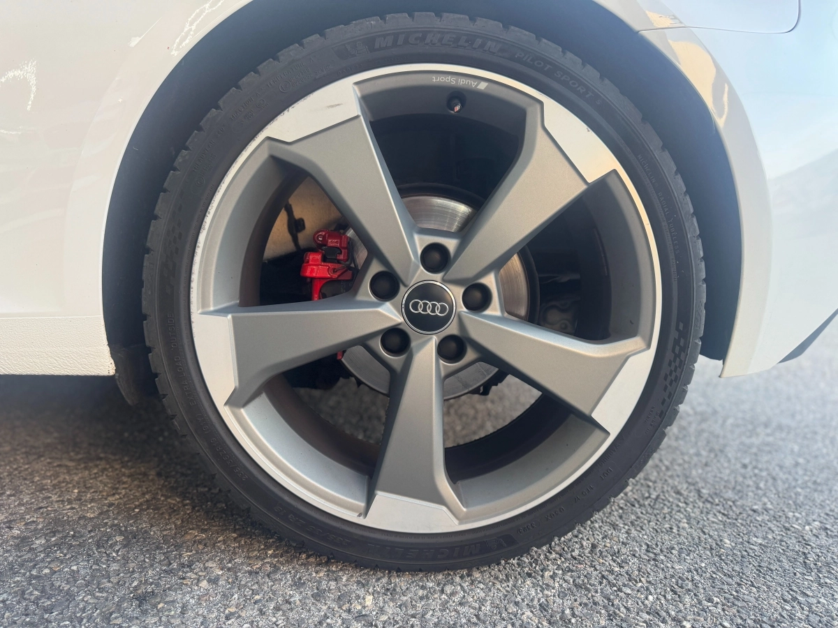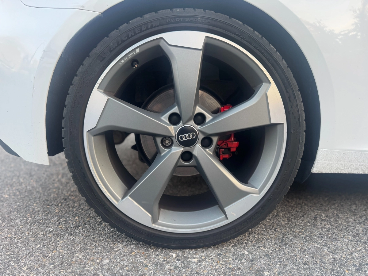 Véhicule parfaitement entretenu, au look affirmé grâce aux jantes Rotor Audi Sport grises et à sa carrosserie 3 portes.