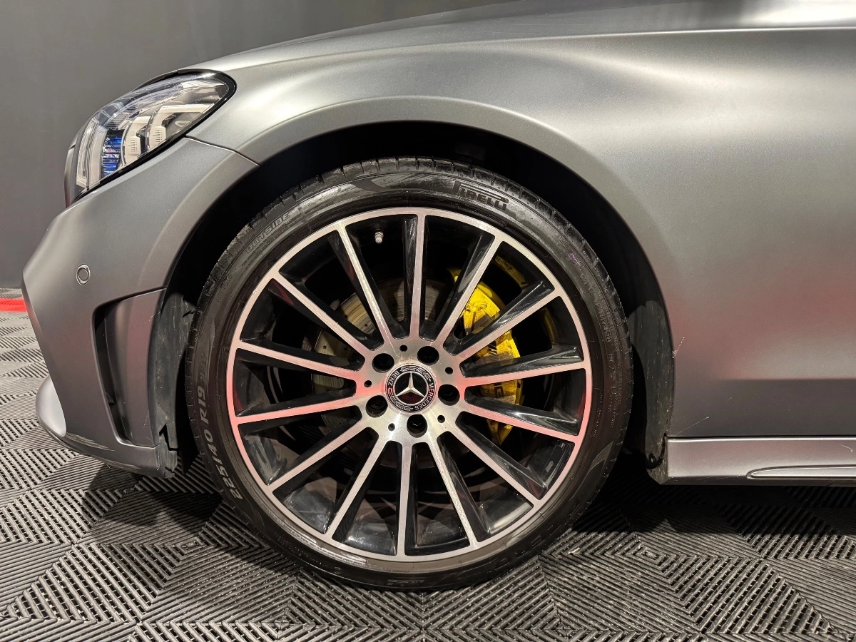 Superbe Classe C Coupé AMG Line dans une configuration rare et élégante, avec sa magnifique teinte gris Designo Sélénite mat, qui lui donne une présence unique et haut de gamme.