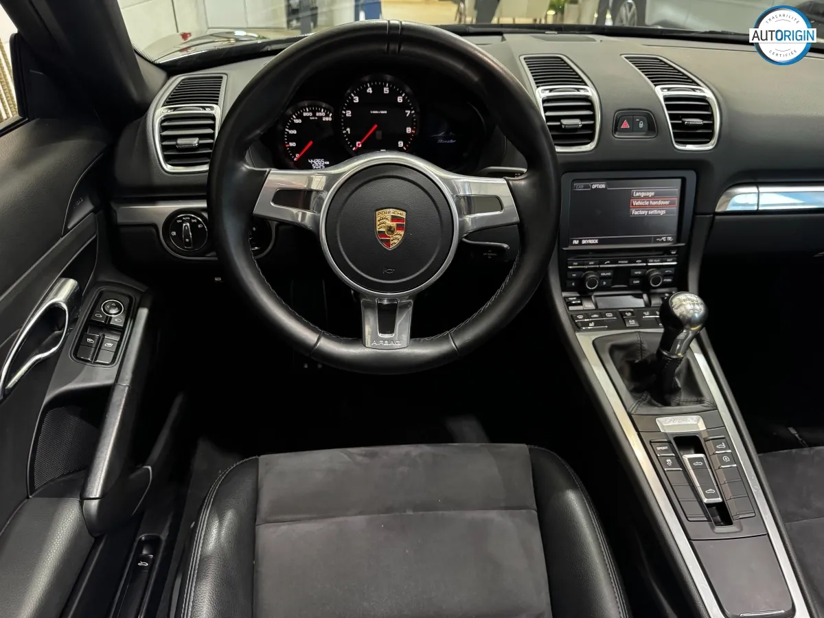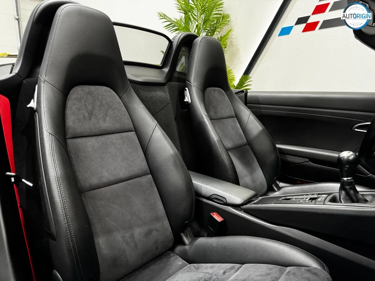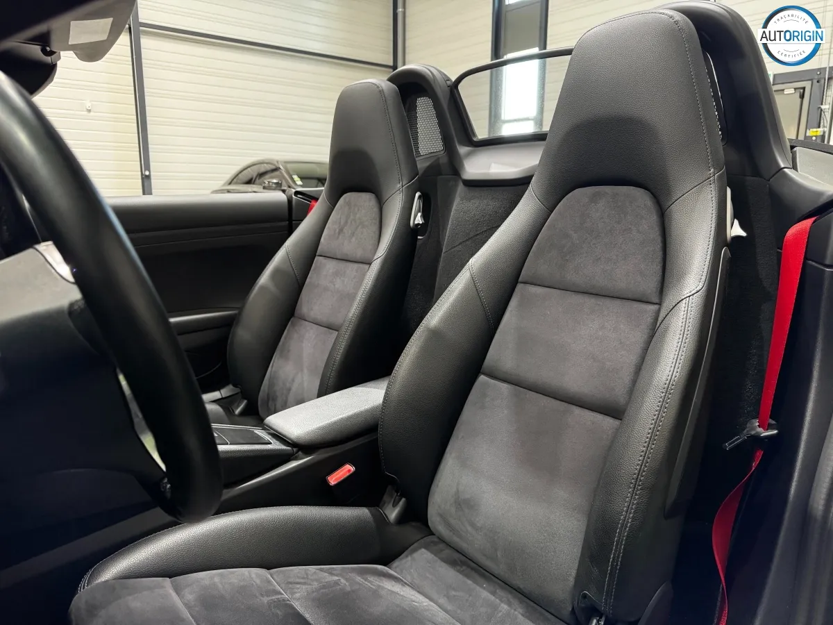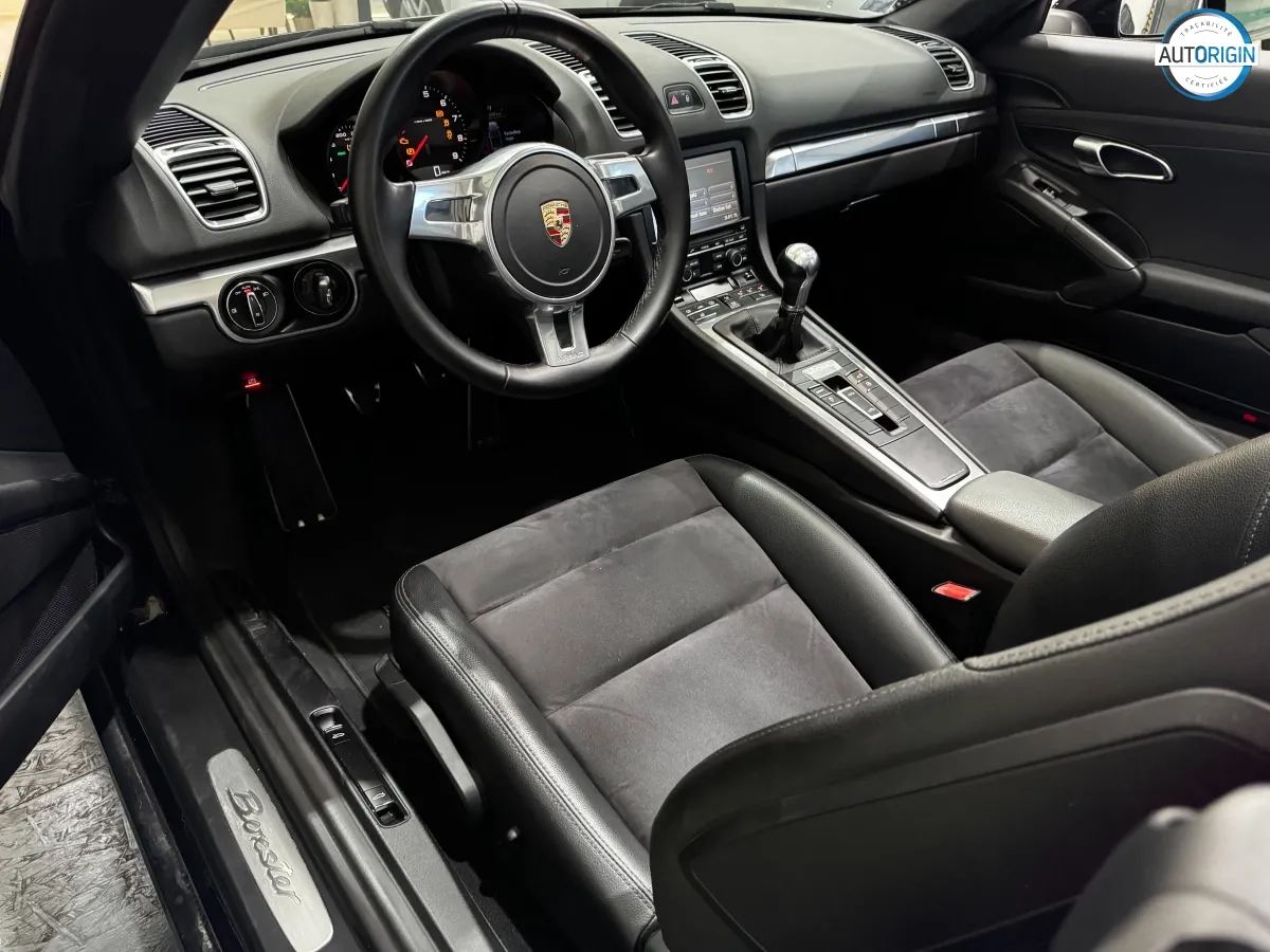 Boxster 981 en boîte manuelle 6 rapports, une configuration recherchée par les puristes. Suivi complet Porsche, 0 sinistre au rapport Autorigin. Exemplaire en excellent état, agrémenté de jantes 19" optionnelles du Cayman S, ceintures rouges, sièges chauffants, et bien d'autres.