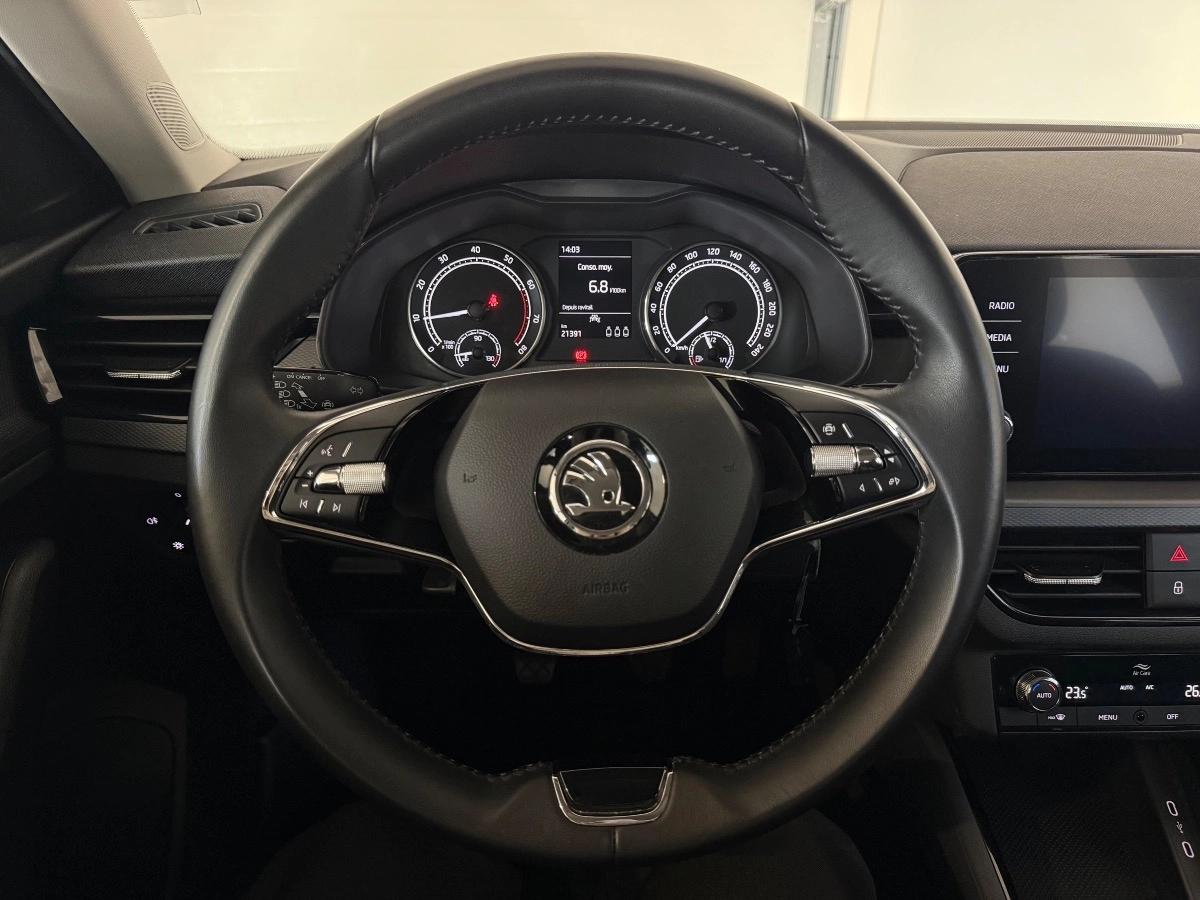 Ce Škoda Kamiq 1.0 TSI 110 EVO en finition Ambition séduit par son design actuel, son habitabilité généreuse et sa technologie embarquée.