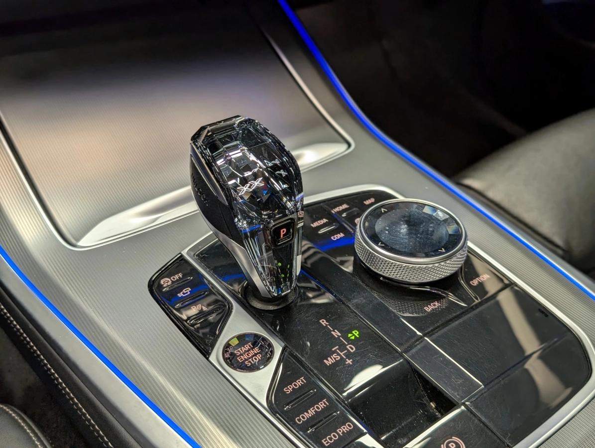 Glass Application “CraftedClarity” : éléments de commande en cristal poli (sélecteur de boîte, bouton Start/Stop et iDrive) apportant une finition luxueuse et très distinctive à l’intérieur.